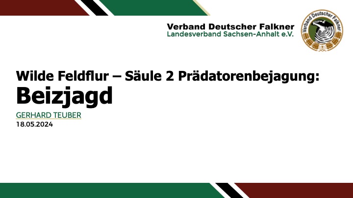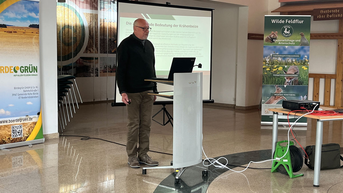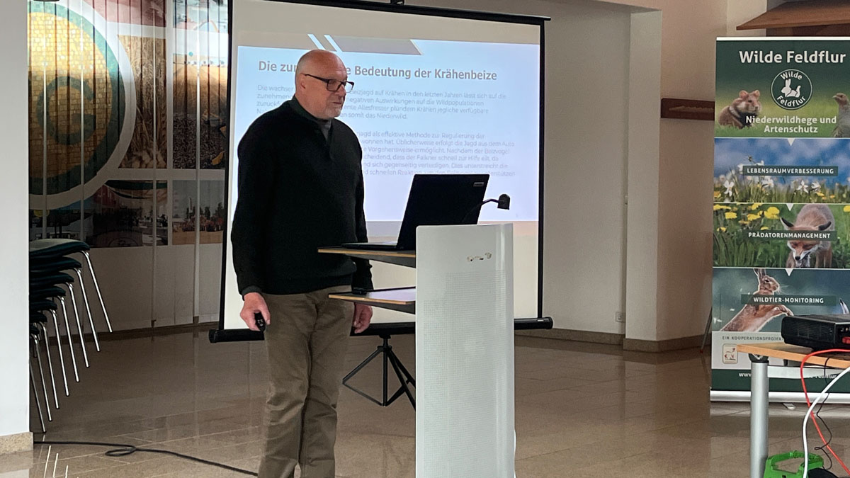 Im Rahmen dieser Veranstaltung hielt Gerhard Teuber, Vorsitzender des VDF Sachsen-Anhalt e.V. einen Vortrag zur “Säule 2 Prädatorenbejagung: Beizjagd”. Die Beizjagd spielt eine wichtige Rolle im Prädatorenmanagement des Projekts und zeigt, wie diese Technik zur modernen Artensicherung beitragen kann. Insbesondere die im Vortrag betonte Krähenbeizjagd erweist sich als effektive Methode zur Regulierung der Krähenpopulation und trägt somit zum Schutz und zur Stabilisierung des Lebensraums bedrohter Arten bei.